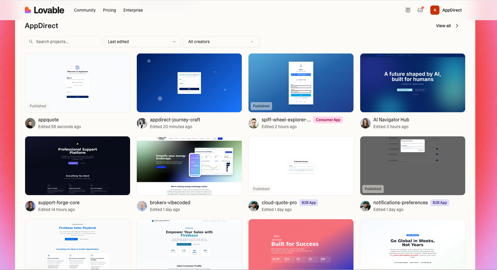 AppDirect's marketing team's non-technical users have vibe-coded over 200K lines of code this year, building 11 projects with four being live in production to-date. Two of these projects are projected to save AppDirect over 120K in software and development costs in their first year. On the whole, AppDirect has over 80 applications currently being built on the Lovable platform, spanning every major functional group in the company: Sales, Finance, HR, Operations, Marketing, and Development.